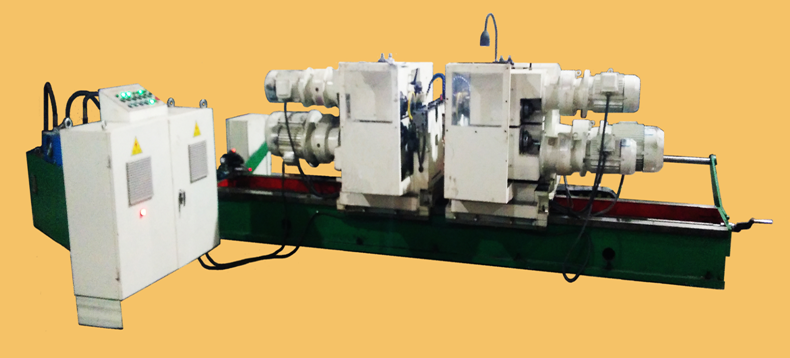 組成:1 床身 2左右拖板 3 左右組合機(jī)頭 4 左右托輥軸液壓夾緊工作臺(tái) 5液壓站 6電控箱 7操作站